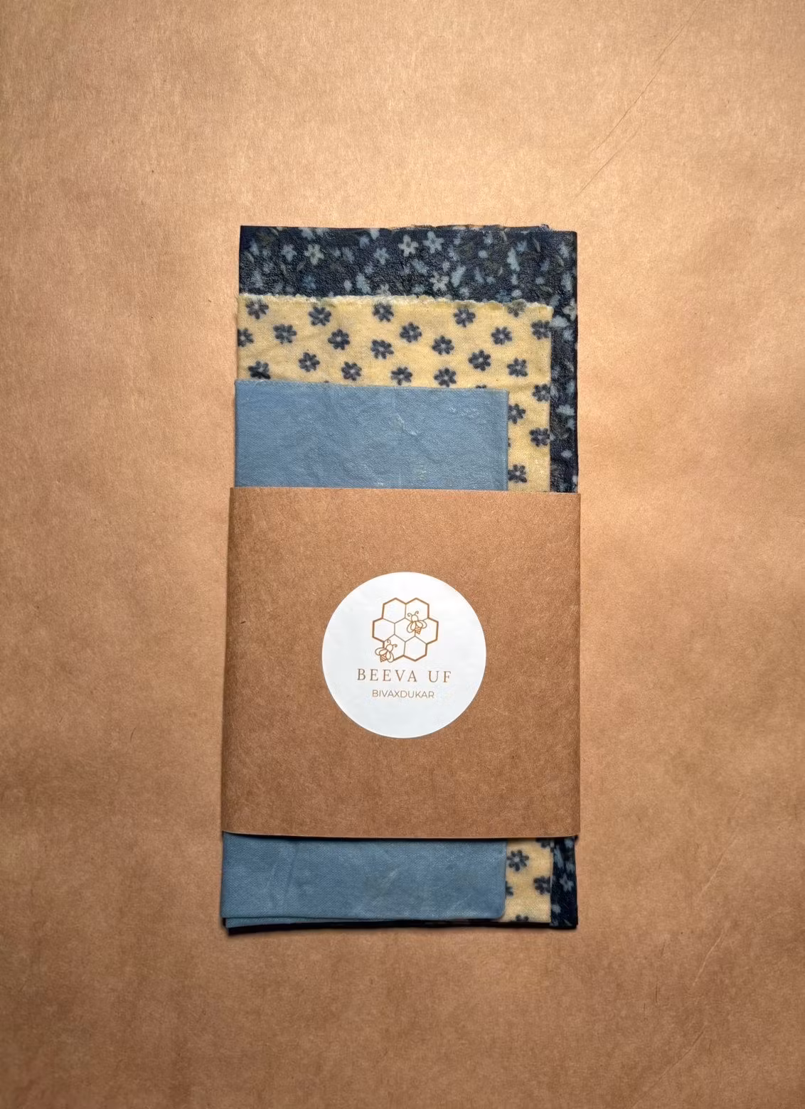 Våra handgjorda bivaxdukar är ett miljövänligt och naturligt alternativ till plastfolie. I detta set ingår tre storlekar: 20×20 cm, 25×25 cm och 30×30 cm,